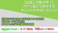 出張ホテルを探す時、俺が血眼になって一番最初に探すのが、楽天トラベルの「楽天スーパーDEAL」対象プランだわ。これは本当に出張民の救世主なんだて。