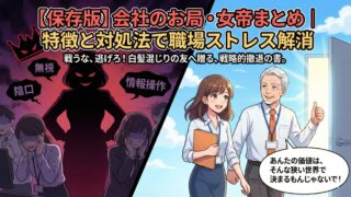 職場の「お局」「女帝」に悩む白髪混じりのお友達へ。このまとめ記事では、会社を支配する彼女たちの特徴、取り巻き(近衛兵)の心理、そして平和にフェードアウトする対処法を網羅。人間関係のストレス、ここで全部解決してちょーだい!